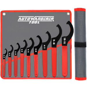 - 🏍️Popular Size Coverage -- Spanner wrench set comes with a roll-up pouch for storage in your car trunk or mechanics gear or hang on the wall. Includes 9 pieces high quality wrenches: 22-26, 28-32, 34-36, 38-42, 45-52, 55-62, 68-72, 78-85, 100-110mm. Meet you different needs.