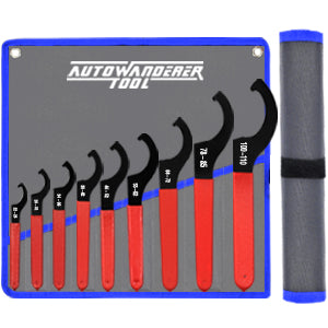 - 🏍️Popular Size Coverage -- Spanner wrench set comes with a roll-up pouch for storage in your car trunk or mechanics gear or hang on the wall. Includes 9 pieces high quality wrenches: 22-26, 28-32, 34-36, 38-42, 45-52, 55-62, 68-72, 78-85, 100-110mm. Meet you different needs.