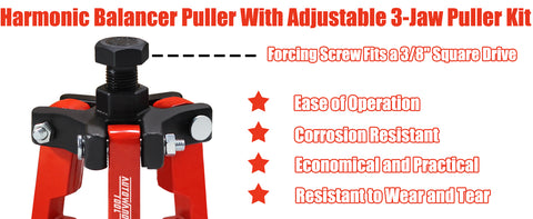 - 【Wide Application】- Harmonic Balancer Puller with Adjustable 3-Jaw Puller Kit works on a wide range of GM, Chrysler, Mitsubishi, Cadillac, Dodge, Jeep, SUV, Vans and Pickup engines - especially LS GM engines.
