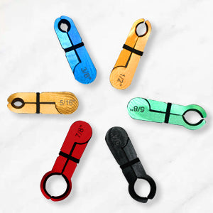Sizes: Champagne-5/16", Blue-3/8", Gold-1/2" , Green-5/8", Black-3/4", Red-7/8"